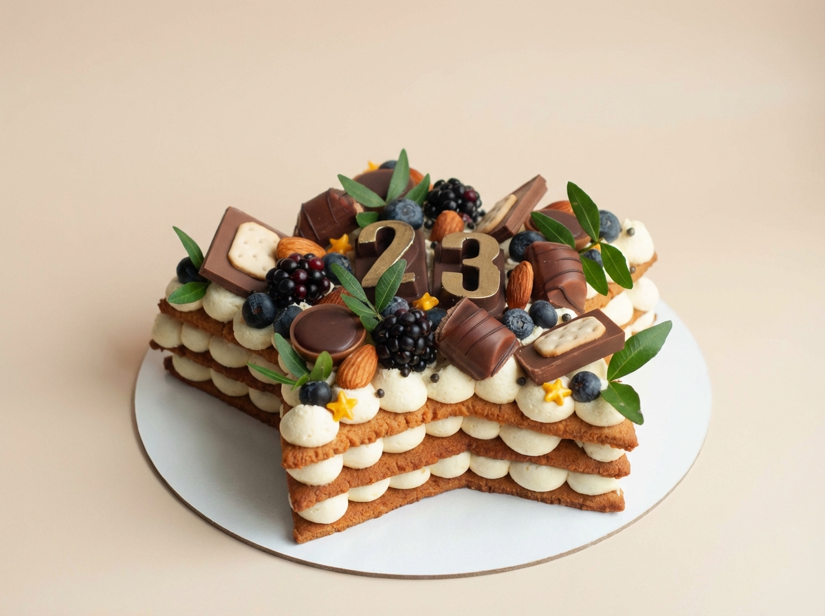 Сметана 20%, сливки 33%, сыр творожный, масло сливочное 82,5%, сахар, мука пшеничная в/с, глазурь шоколадная белая, мало подсолнечное, мед, сода, соль. Белки -5,4; Жиры — 22,4; Углеводы — 36,1; энергетическая ценность 365 ккал.