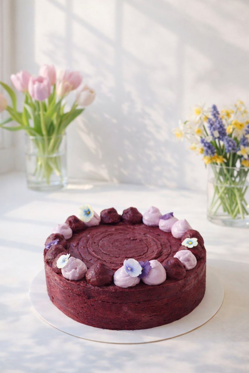 Чередование невесомых шоколадных и ванильных коржей создаёт лёгкую, воздушную текстуру. Их мягко балансирует крем из ягод смородины — с тонкой ягодной кислинкой, которая подчёркивает вкус и не утяжеляет десерт.
