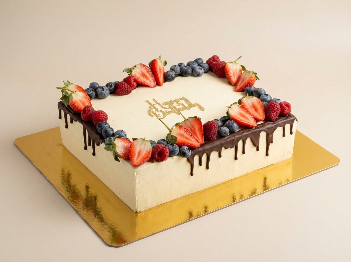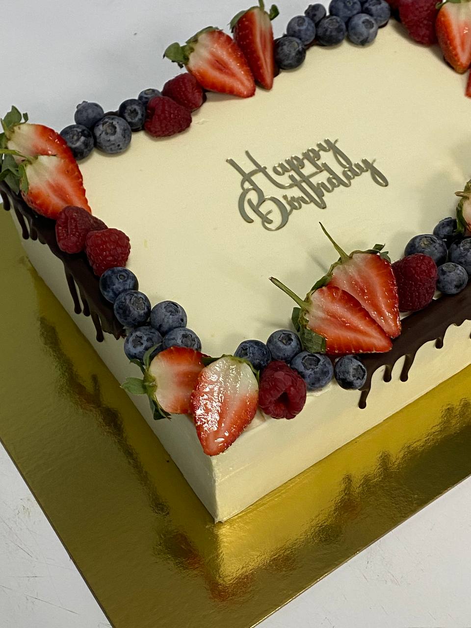 Торт черный лес со свежими ягодами и шоколадной поливкой