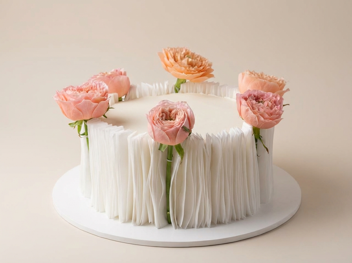 Трендовый торт из вафельной бумаги и живых цветов